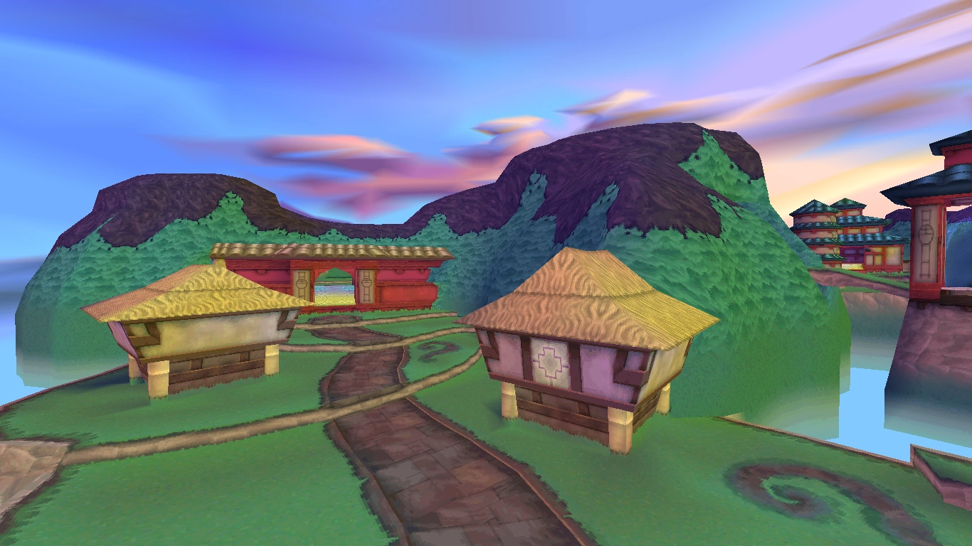 Мир выполнен в китайском стиле: тут и там стоят на прочных сваях лёгкие домики, своеобразная восточная архитектура, даже противники здесь придерживаются ориентального стиля.