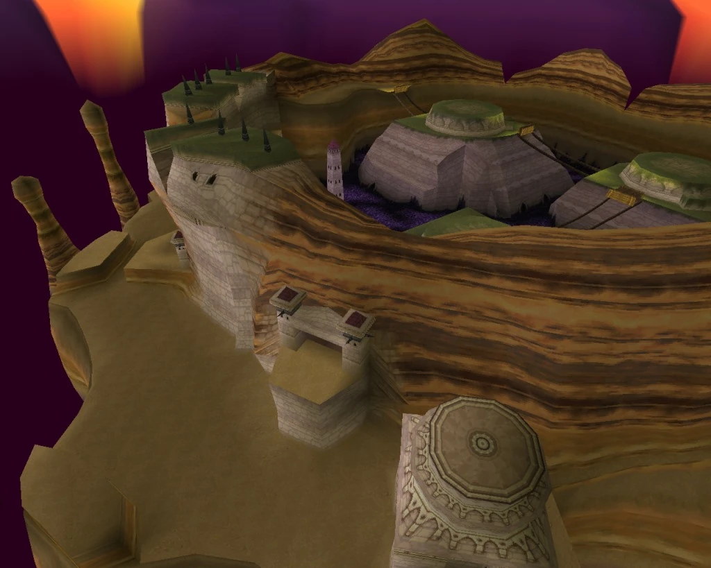 На пылающем оранжевом небосводе этого мира видно зловещее затмение, готовящее к встрече с правителем этих земель Доктором Шемпом. Даже облака здесь выглядят словно языки пламени, желающие поглотить остатки затемнённого солнца.