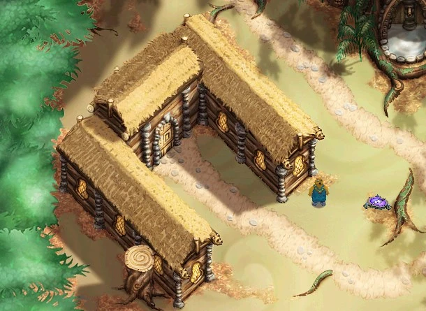 В западной части поляны, на высоких пнях, оставшихся от могучих деревьев, устроен склад преграждаемый каменным лабиринтом. Там, под тремя деревянными арками, на полках покоятся ящики и вазы, таящие в себе диковины, собранные со всех концов света.