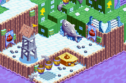 Форт пингвинов возведён посреди ледяных вод, где обитают миловидные, но опасные тюлени и всплывают айсберги. Но это не страшно для хорошо укреплённой базы, где суша обшита стальным настилом, проглядывающим сквозь снега и оправлена бревенчатым каркасом. По военной территории протянуты заборы с колючей проволокой и возведены наблюдательные вышки. Расчётливые пингвины заготовили большие запасы рыбы, подчас используя контейнеры с ней как фундамент. Схожую роль порой выполняют и жёлтые коробки, из которых просыпались бомбы.