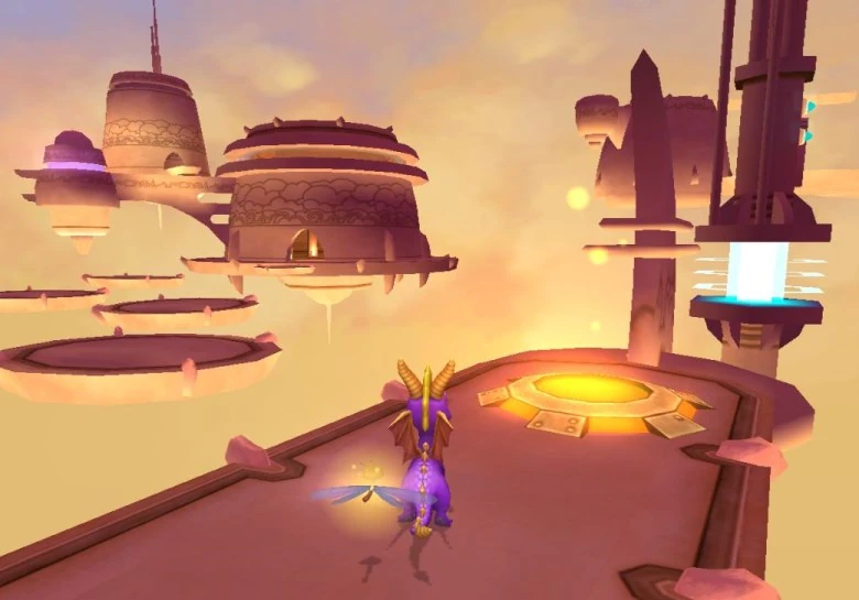 Поднявшись сюда на лифте-транспортёре с Прибрежных Руин, Спайро встанет на распутье, где дорога расходится в три стороны. Левый путь является закольцованным маршрутом, проходящим по маленьким круглым летающим площадкам. Основной, пролегающий через постройку, ведёт к обители дракона-старейшины Титана, который обучит умению использовать крылья как щит. Неподалёку стоит установка Профессора, позволяющая при наличии 40 камней света разгоняться до больших скоростей.