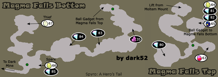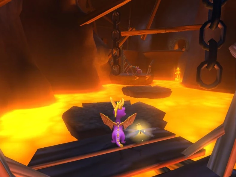 На перекрёстке в юго-западной части шахт зияет узкая щель, в которую может пробраться Спаркс. На севере от того места находятся строительные леса, установленные прямо над бушующим лавовым озером и облюбованные вором, не ожидавшим, что дракон отправится так далеко ради возвращения украденного яйца. Оставшийся третий путь от развилки выводит к подземному лавовому каньону с парящими скалами, по которым можно добраться до Тёмных Шахт.