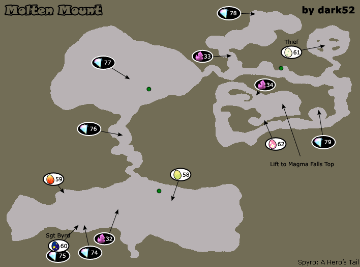 | Volcanic Isle Stormy Beach • Molten Mount • Magma Falls • Dark Mine • Red's Laboratory • Red's Lair |