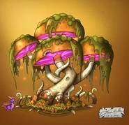 Эти удалённые от любопытных глаз водно-болотистые угодья приютили в своём лоне бесчисленное количество различных любителей воды. Гигантские грибы возвышаются над остальными домиками в селении, предоставляя своим положением надёжное убежище и укрытие от враждебных существ тем, кому это действительно необходимо. Шляпки грибов делают это место очень тёмным, тенистым и зловещим даже в дневное время. Болото таит в себе множество опасностей. Болотные хищники, например, лягушки-сорняки и ламповые пауки агрессивнее любого жителя болот в несколько раз. Среди болотной зелени также сидят в засаде хитрые лягушки, готовые напасть на любого, кто вызовет у них подозрения. Стрекозы являются одними из немногочисленных дружелюбных обитателей болота, их присутствие на болоте показывает, что большинство местных жителей — насекомые.