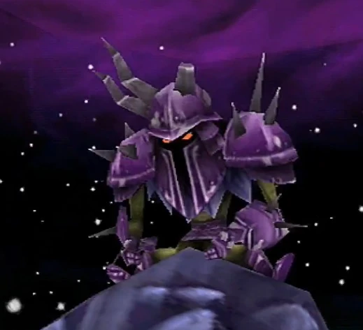 The Assassin wears purple armour and has a helmet with seven long, purple spikes. He speaks in a muffled voice due to his large helmet.