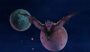 His Shadow Wing has a purple helmet with three spikes (different from the other Shadow Wings whose helmets have only one spike) and a sickly tan colored face and belly. Its eyes are hot pink, and pink drool slimes out of its mouth.