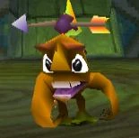Banana Boys[1] are small apelike enemies that appeared in Tree Tops of Spyro the Dragon.and the remake. They are also armored in the level Metalhead. They throw bunches of bananas at Spyro. When defeated, they make a small grunt sound, while the armored versions make a noise similar to Gnorc Gunners. They have an arrow through the top of their fur.