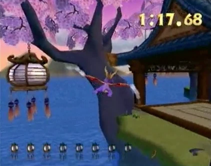 Banzai Speedway is a Speedway in which Spyro must complete the local obstacle course, and race against the Riptocs. Here, you must come in first place in order to unlock the dragonfly "Yojimbo." Aim for the Warp stars and follow the red dots. In order for Spyro to fly at his fastest at a constant rate you must fly through all of the rings.