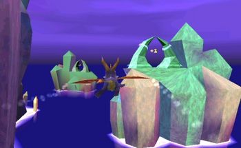 Crystal Flight is the third Speedway first appearing in Spyro the Dragon and its remake in the Spyro Reignited Trilogy. It's the speedway of the Magic Crafters homeworld, this realm is directly behind a crystallized dragon. It's filled with crystals in a body of water and contains a semi-dark sky. The time limit in this level is twenty-five (25) seconds.