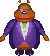 Moneybags is a large, brown, chubby anthropomorphic bear.