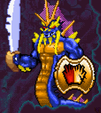 The Naga is a large, blue and yellow serpent who wielded a sword and a shield. He only appeared in the Gameboy Advance version of The Legend of Spyro: The Eternal Night. Naga was a monster in the Ancient Grove who was sought after by Skabb and his Skavengers. However Spyro defeated Naga, and the Skavengers captured the dragon instead to force him to fight in their arena.