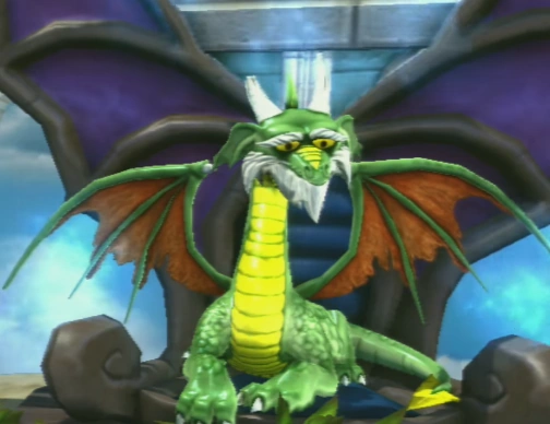 One day the dragon knight, Flavius, convinced an aged Ramses to go flying with him. However, while they did, Vathek sat on the Dragon's Throne, in which by Dragon law that he who sits on the throne becomes ruler of all of Dragon's Peak. Ramses was then cursed by Vathek, and the elder dragon was turned to stone as a result. The Skylander was soon brought to Dragon's Peak by Flavius to rid the islands of Vathek's rule and save Ramses. The heroes defeated the minions guarding Ramses's stone form, and the Dragon King awakened from the spell. He told the Skylander on how to reach Vathek and stayed behind due to the curse leaving him far too weak to fly.