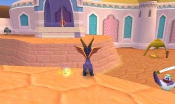 - If you look on the back panel of a physical copy of the game, you'll notice that one of the pictures shows Spyro using the supercharge power-up in this level, suggesting that it was intended to be the level's original power-up instead of the superflame.