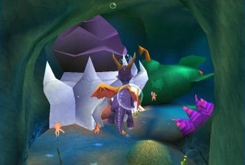 In the area where Spyro rescues Stanley the Seal from the octopus, there is a rare chance that Spyro can get sucked to the bottom and act like he isn't underwater. The player can't move nor pause, and the only way out is to restart the game.